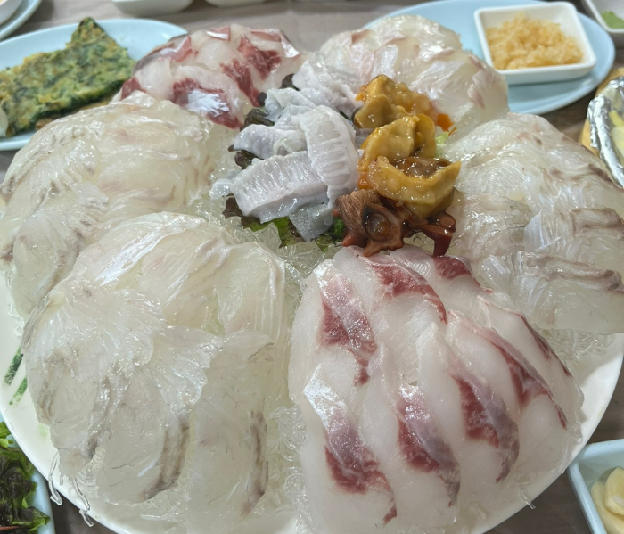 저녁은 회를 먹으려고 현지인 맛집으로 검색해서 찾았어요. 파도소리! 다섯 시 반에 도착했어요. 주차 자리가 3자리 정도 있어요. 주차가 어려우면 근처에 롯데슈퍼 주차장에 주차해도 좋을 것 같네요. 우린 다행히도 주차 자리가 있었어요. 파도소리는 동네 맛집 느낌이요. 배달, 포장주문도 많고요. 부추부침개, 가자미구이 맛있고요. 회는 신선하고 쫄깃했어요. 매운탕에 수제비도 맛있고 밥을 말아먹게 하는 국물 맛도 좋았어요. 검색으로 찾은 속초 회맛집 파도소리 재방문 의사 있는 만족한 회맛집입니다. 참고로 중자 7만 원 모둠회로 3인이 식사했습니다.