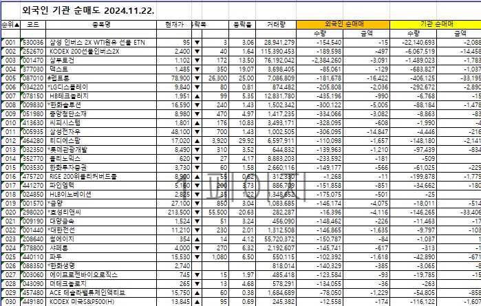 카테고리 없음 외국인.기관 순매수 순매도 상위 30위. 2024.11.22. by 믿으며 흘러가~ 2024. 11. 22. 반응형 2024.11.22.외국인기관 순매수 2024.11.22.외국인기관 순매도 반응형 공유하기 게시글 관리 날마다 감사♥ 저작자표시 (새창열림) 댓글